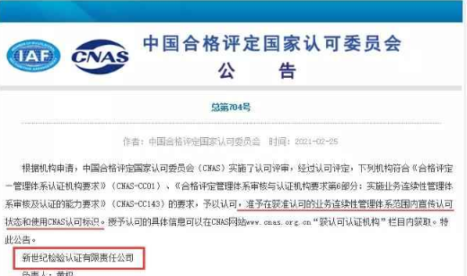 近日,新世纪检验认证有限责任公司(简称 BCC)收到来自现代牧业(集团)有限公司的中标通知,成为该公司总部及14家牧场质量、环境、职业健康安全管理体系认证项目的服务提供商。阅读更多 -