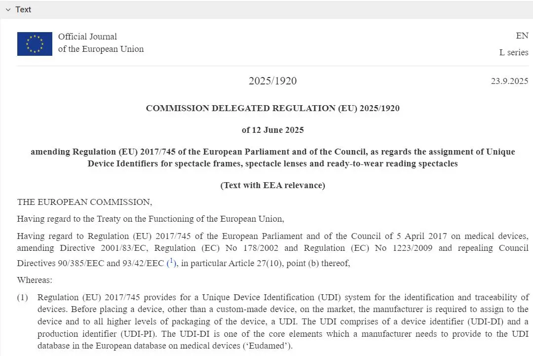 欧盟UDI新规出台!眼镜架、镜片及老花镜标识管理迎来重大变革
